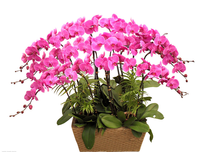 其次看花。包括花的数量、大小、花形等。蝴蝶兰是按花朵数分等级的,花苞在8~11个之间,是A级;花苞6~8个,是B级;花苞6个以下,是C级。看花的大小,指一朵花盛开时横向最长的尺寸,目前蝴蝶兰花径达到10厘米的就算很好了,如果花径能达到12厘米,花的品质无疑非常好。花形方面,花瓣紧凑、完整的最好。至于花瓣的颜色和厚度,目前大多数人还是偏爱粉红色系的蝴蝶兰,粉红色越是鲜艳就越贵。当然,花瓣还是厚的好,看上去有种毛茸茸的感觉。